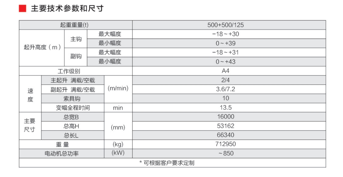 主要技术参数和尺寸